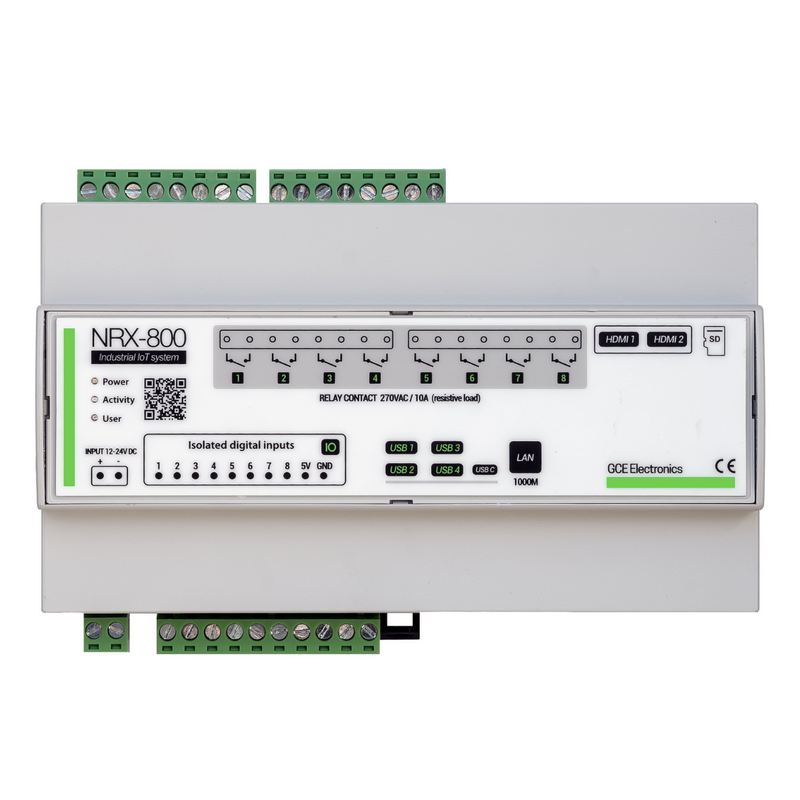 El NRX800 es un controlador industrial basado en un Raspberry Pi Compute Module 4 (CM4), diseñado para ofrecer fiabilidad y rendimiento incluso en entornos industriales perturbados.