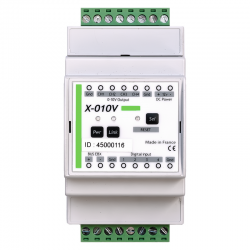 Le X-010V se connecte facilement via le bus EBX et s’intègre parfaitement dans un tableau électrique (3 modules DIN). Fabriqué en France et garanti 2 ans.