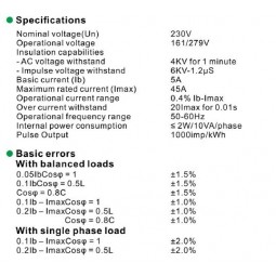 Compteur d'énergie 45A avec sortie impulsion. Rail DIN. Certifié MID par le laboratoire SGS.